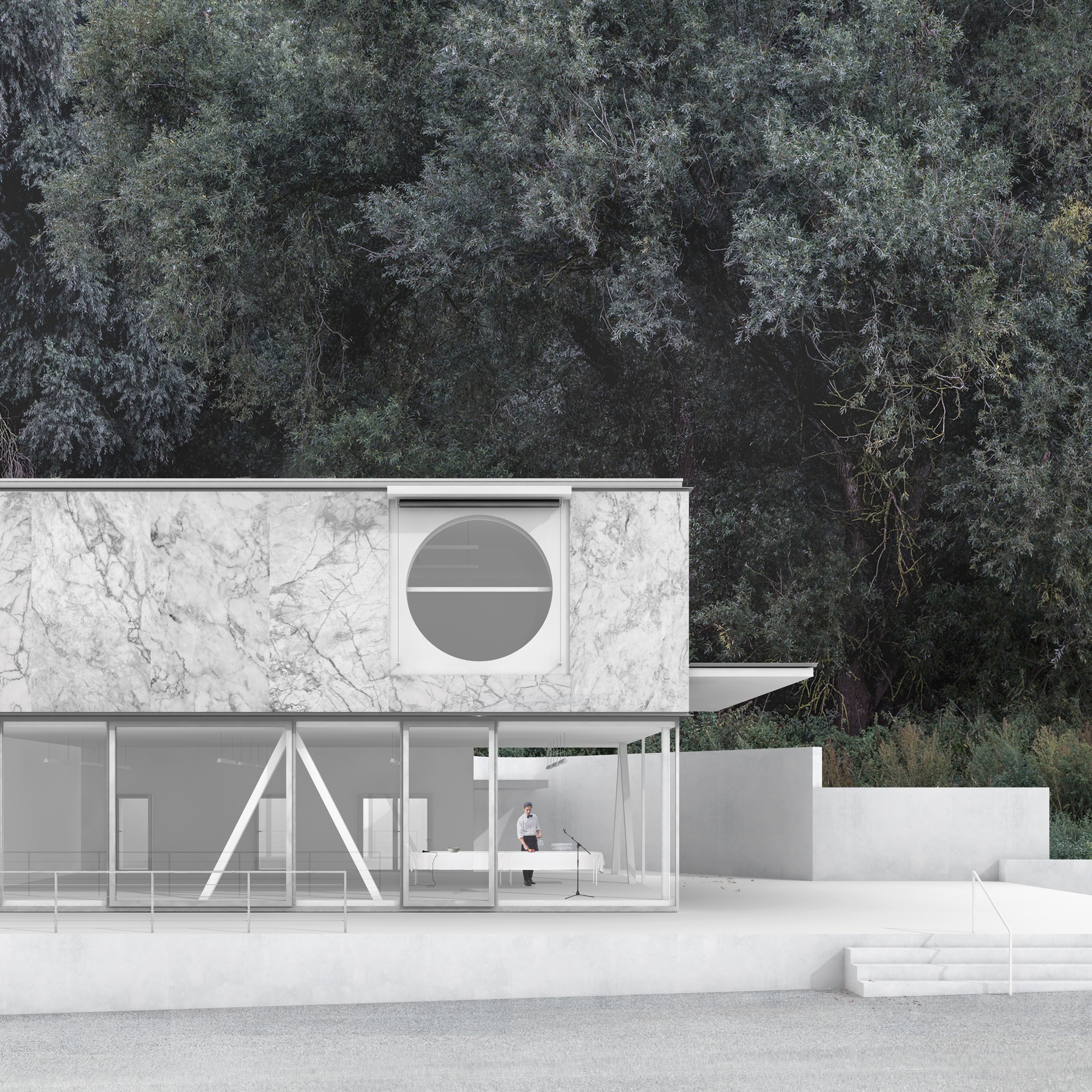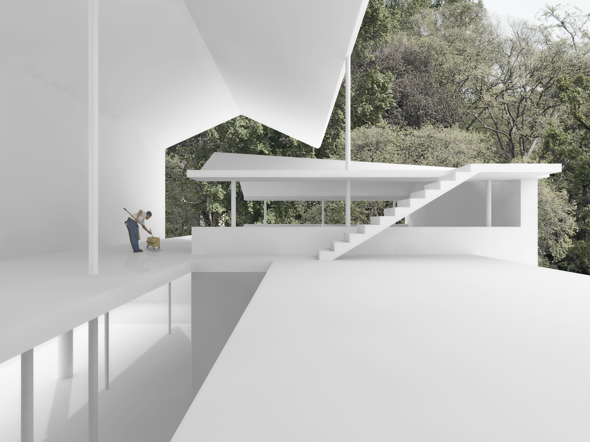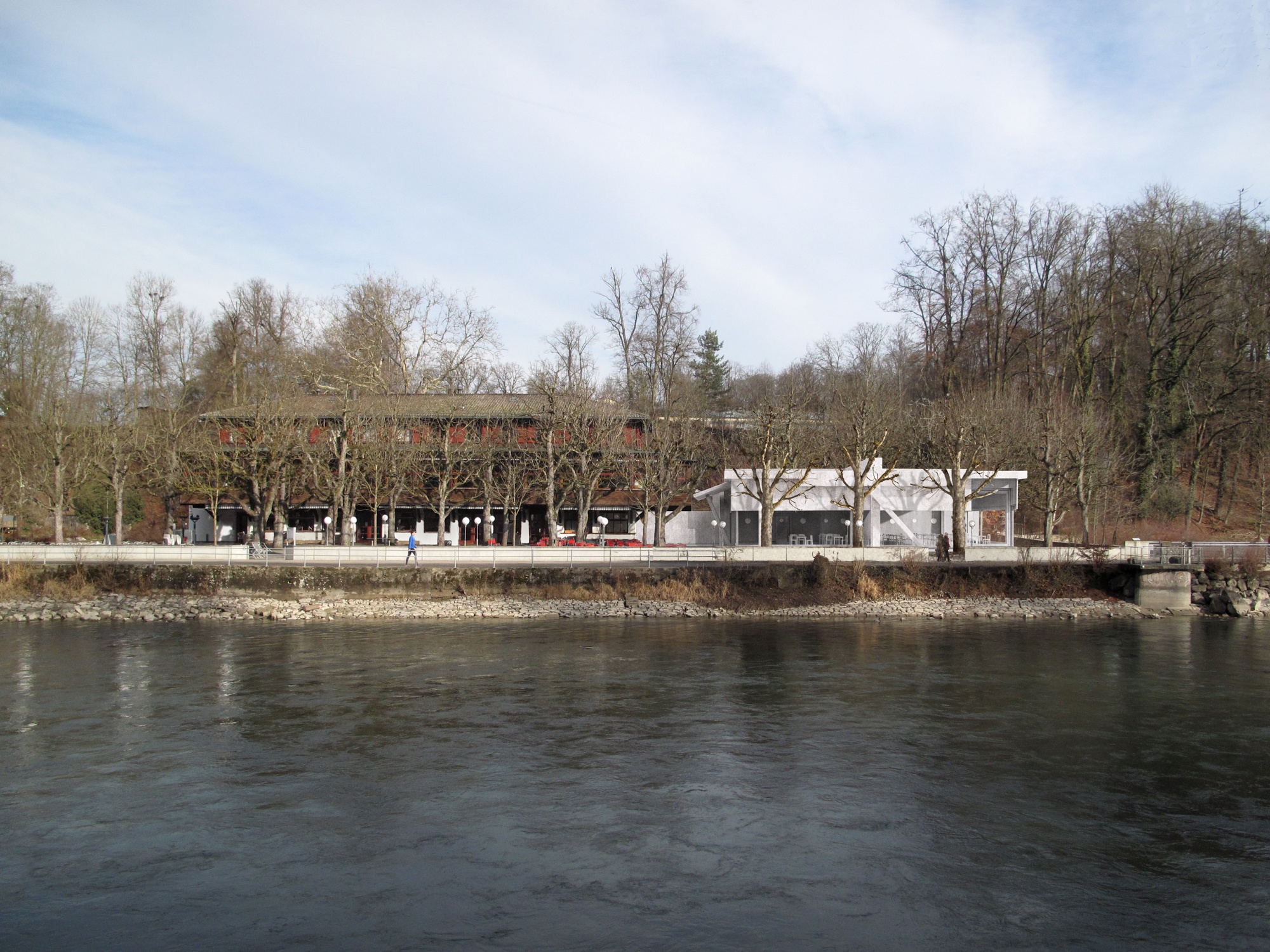 by JUNG is a collaboration between Jonas Ulmer and Nathan Ghiringhelli. We started to work together with this competition entry for the addition to the Restaurant Dählholzli in Bern. Nicely located along the Aare river, a white pigmented concrete structure sits beside the old wooden building.