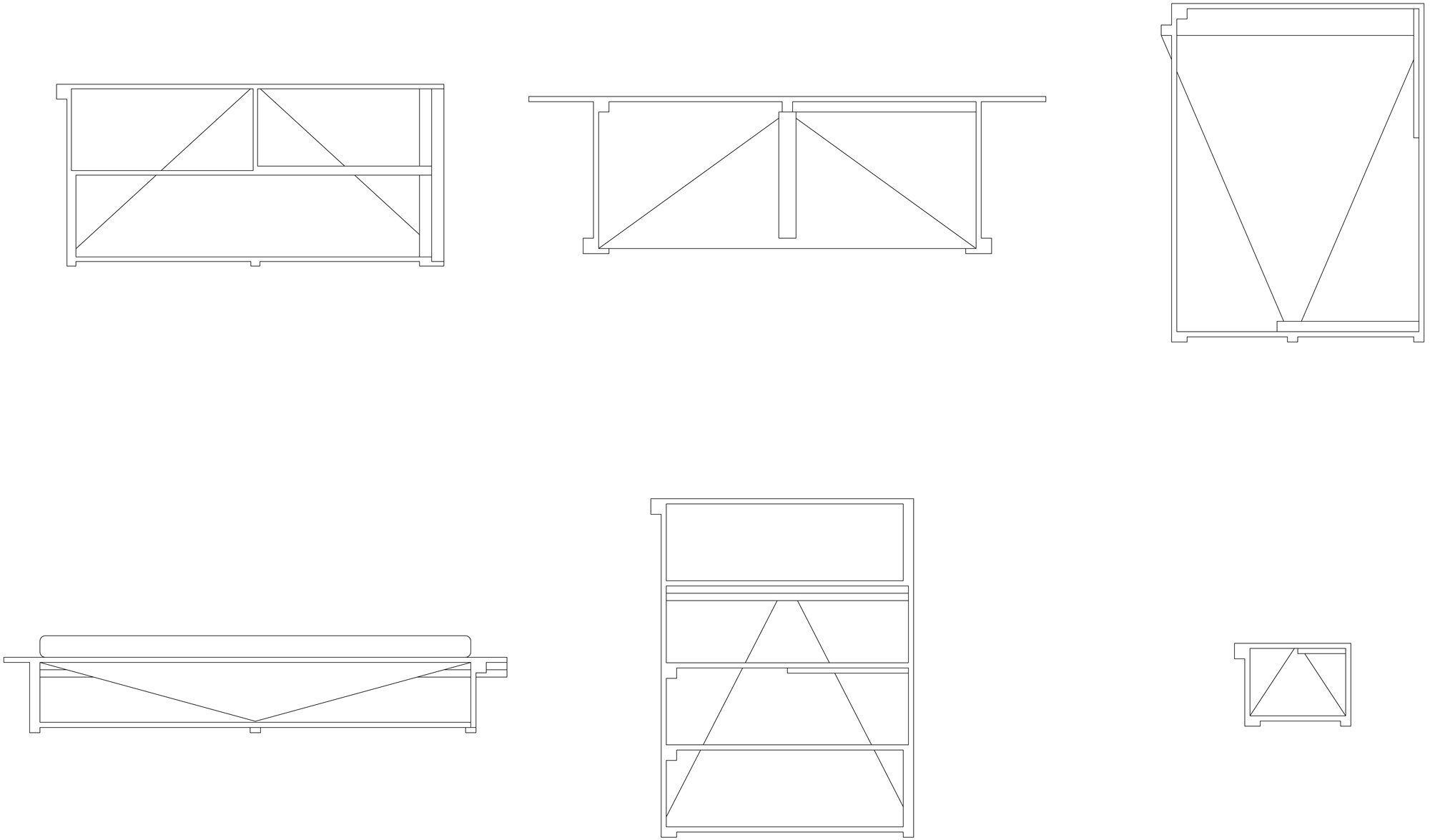 In 2016 we designed a serie of furniture pieces for an apartment in Biel/Bienne. A family of six objects, for six different rooms. Each piece is unique, but based on identical constructive and architectonic principles. Instead of changing the spaces through a classic refurbishment of the building's substance, the idea was to change the appearance of each room by inserting characterful objects. Like a sculpture, each piece of furniture characterise the room where it stands.