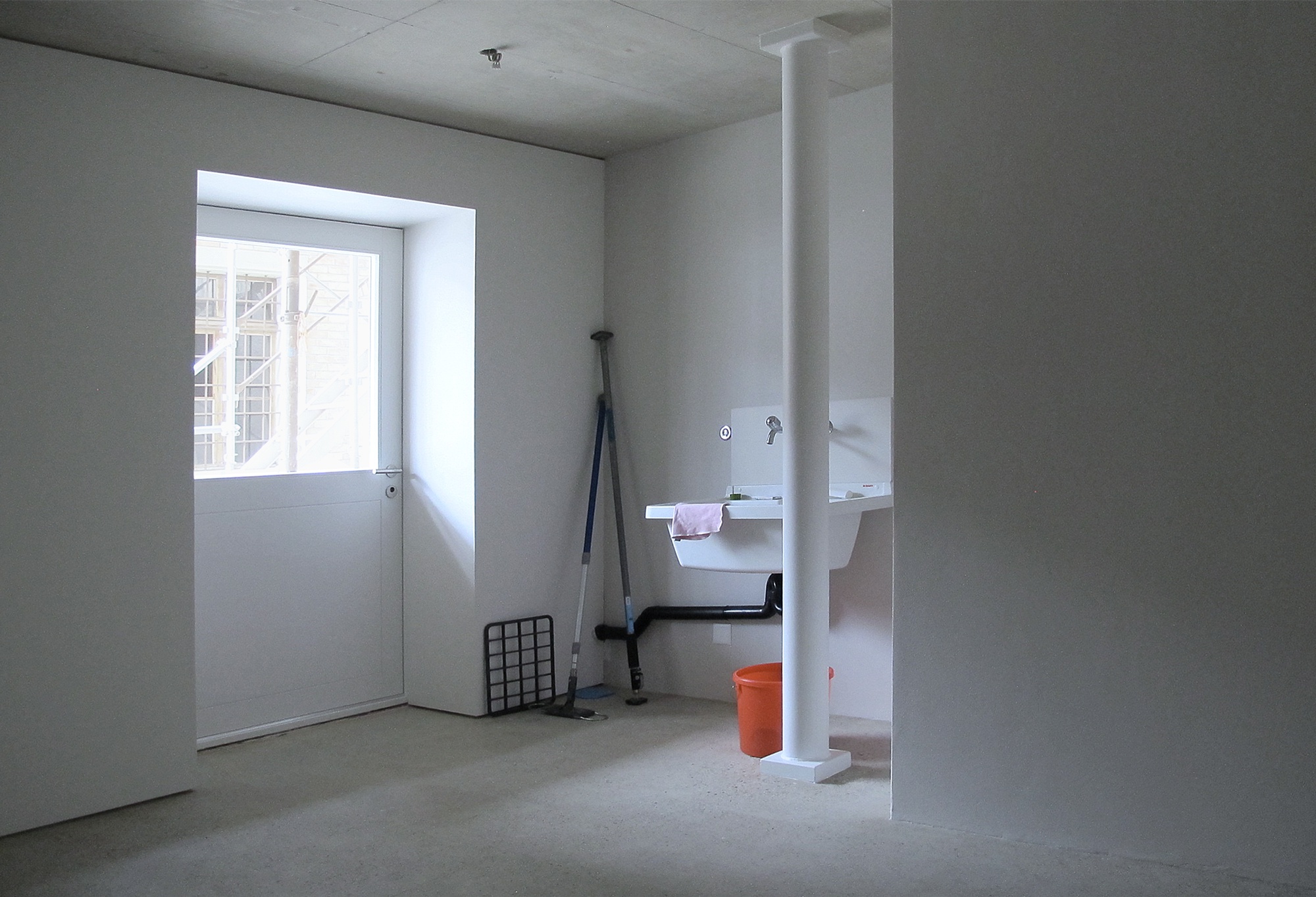 After two year of planning, we recently started the construction for the conversion of an protected building in Signau, Emmental. The interior of the existing building will be almost completely emptied. A new structure will fit a house developing over 3 floors. In the photograph: a detail of the staircase shaft connecting the three floors.