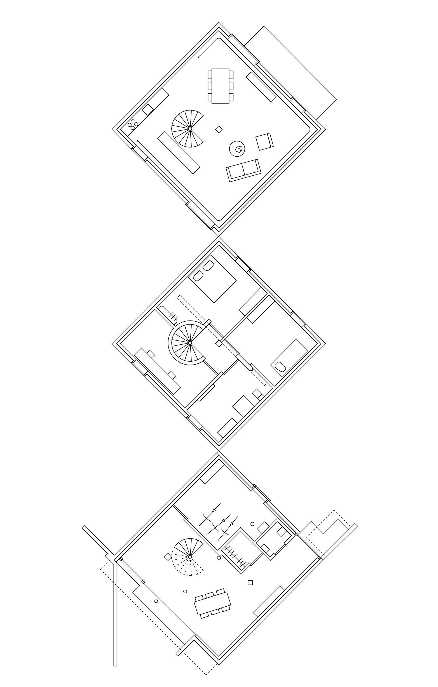 By expending the side walls to the outside, the ground floor opens in two directions. The main room finds itself between outside spaces with very different characters: a public backyard by the entrance, a private garden by the living room.